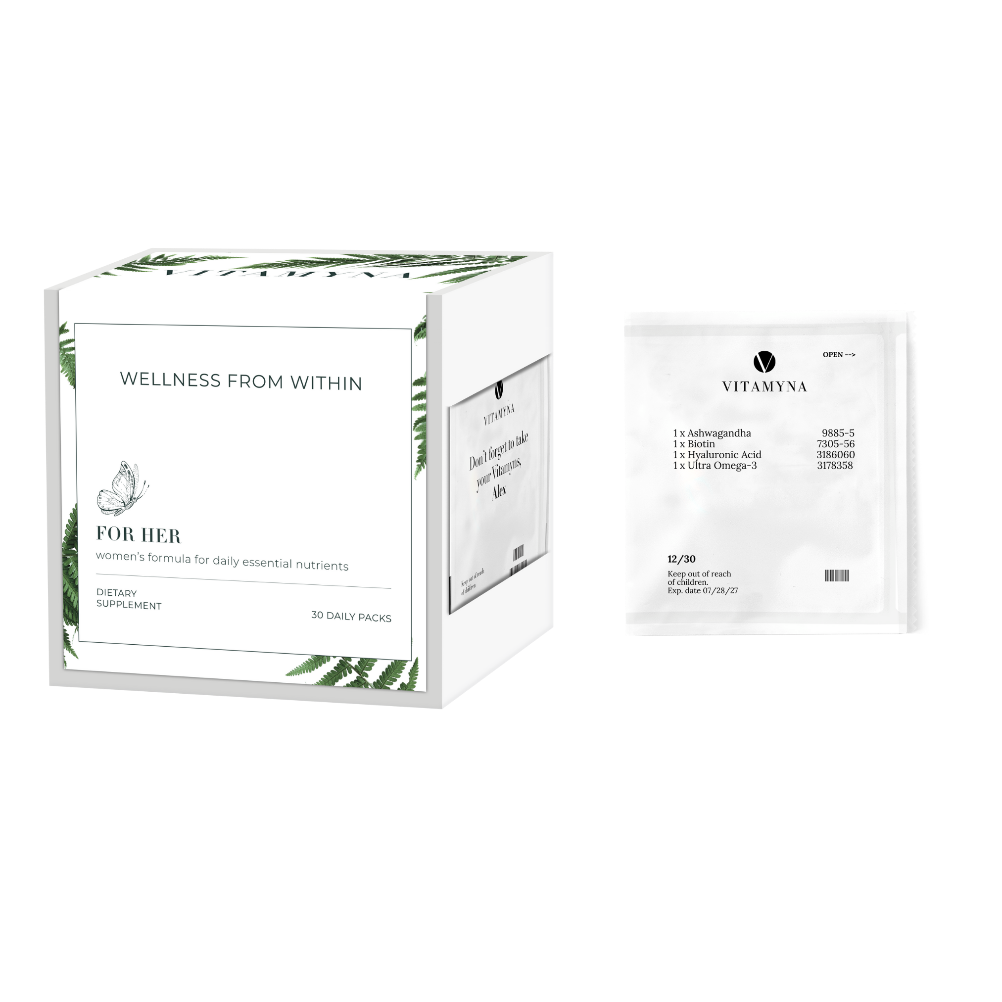 Whether you are new on your health journey or have been on it for a lifetime, Vitamyna makes it easy to stay consistent in supporting your health. Our highly personal and convenient daily solution packs are tailored to address your everyday concerns. Experience the power of our direct-to-consumer model which eliminates shelf time and allows for our potent formulas to reach you in their purest form. We also prioritize sustainability, using eco-friendly packaging and sourcing ingredients responsibly to help make the planet healthy as well. When you choose Vitamyna you choose wellness from within.